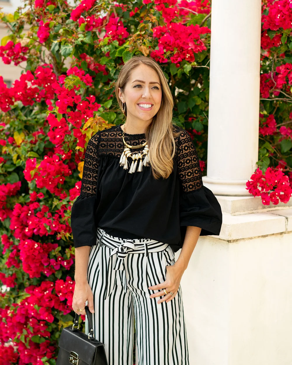 black and white striped pants outfit ideas